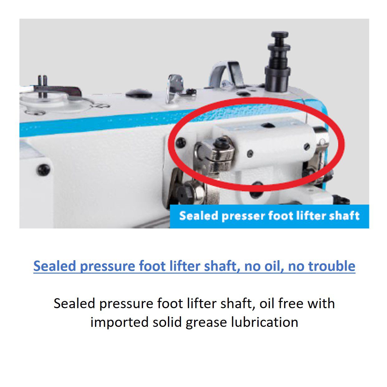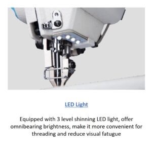 Top and Bottom Feed: The “walking foot” mechanism ensures that multiple layers of fabric—even slippery or heavy materials—are fed through the machine evenly without shifting.