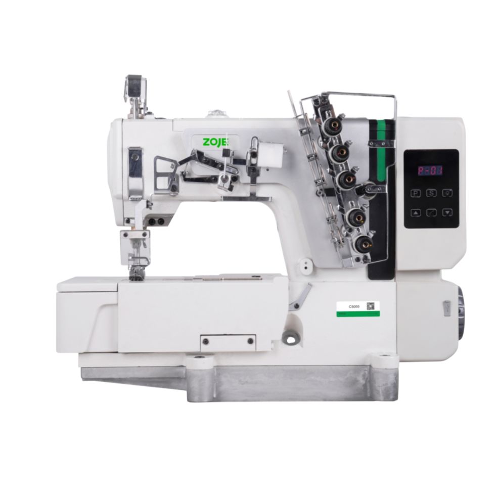 Zoje C5000 is a high-speed industrial interlock (flatlock) sewing machine designed for professional garment production. Built for smooth seam joining and decorative stitching, it delivers stable performance, low vibration, and consistent stitch quality — making it ideal for knitwear, sportswear, and stretch fabric applications.