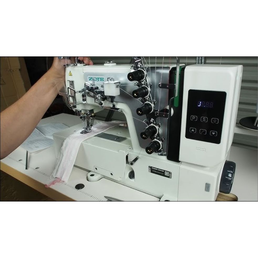 Zoje C5000 flatlock machine, 3 Needle 5 thread front view Zoje C5000 Industrial Flatlock...